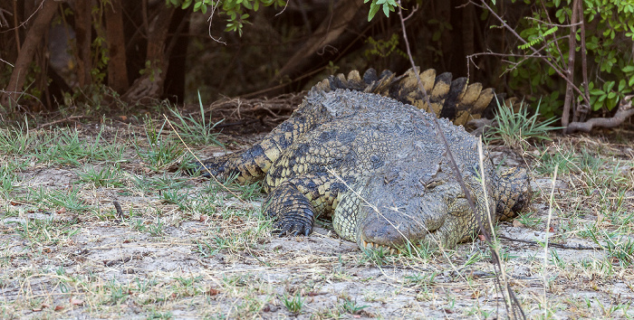 In der Bildmitte ein Nilkrokodil (Crocodylus niloticus).