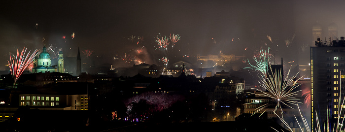 München Blick vom BR-Funkhaus: Silvester-/Neujahr-Feuerwerk Frauenkirche Maximilianeum Theatinerkirche