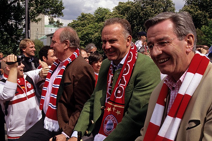 Corneliusbrücke: FC Bayern-Meisterschaftskorso mit Uli Hoeneß und Karl-Heinz Rummenigge